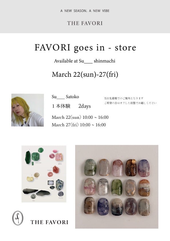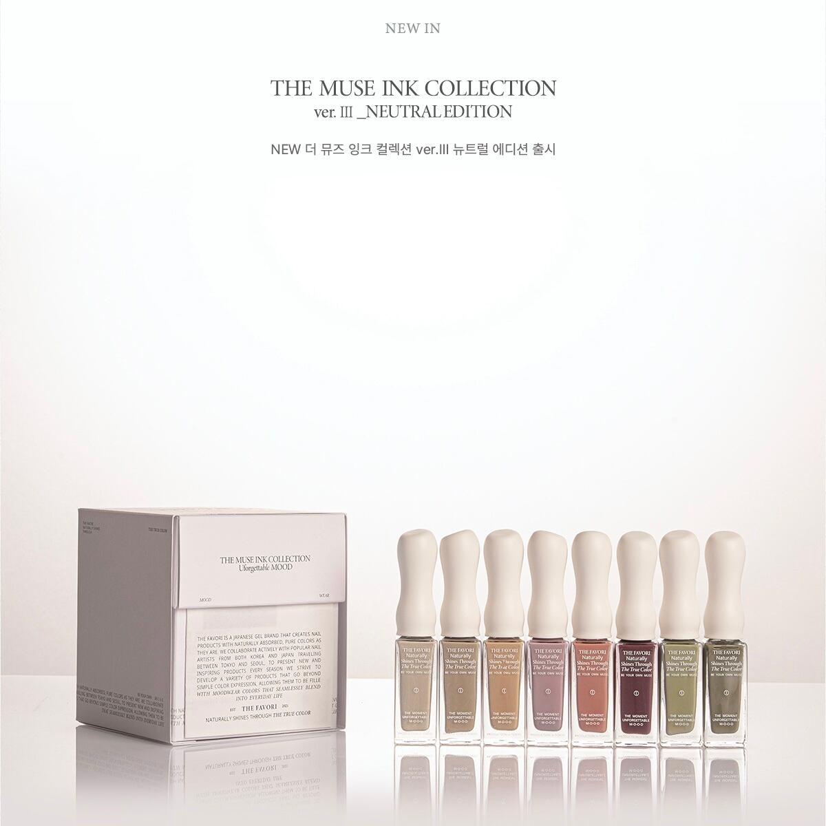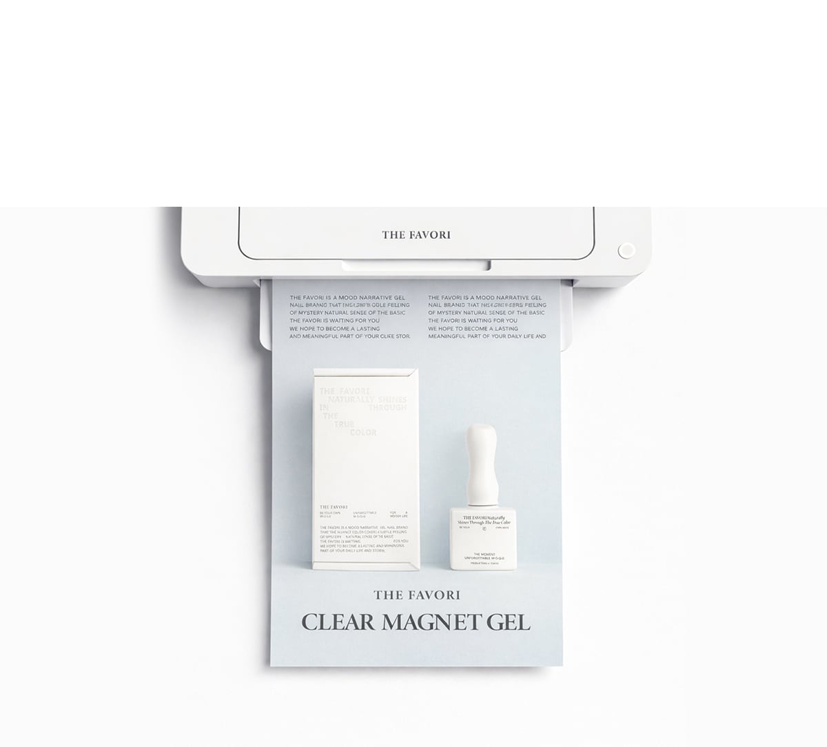 THE FAVORI IS A JAPANESE GEL BRAND THAT CREATES NAIL PRODUCTS WITH NATURALLY ABSORBED, PURE COLORS AS THEY ARE. WE COLLABORATE ACTIVELY WITH POPULAR NAIL ARTISTS FROM BOTH KOREA AND JAPAN, TRAVELING BETWEEN TOKYO AND SEOUL, TO PRESENT NEW AND INSPIRING PRODUCTS EVERY SEASON. WE STRIVE TO DEVELOP A VARIETY OF PRODUCTS THAT GO BEYOND SIMPLE COLOR EXPRESSION, ALLOWING THEM TO BE FILLED WITH MOODWEAR COLORS THAT SEAMLESSLY BLEND INTO EVERYDAY LIFE.