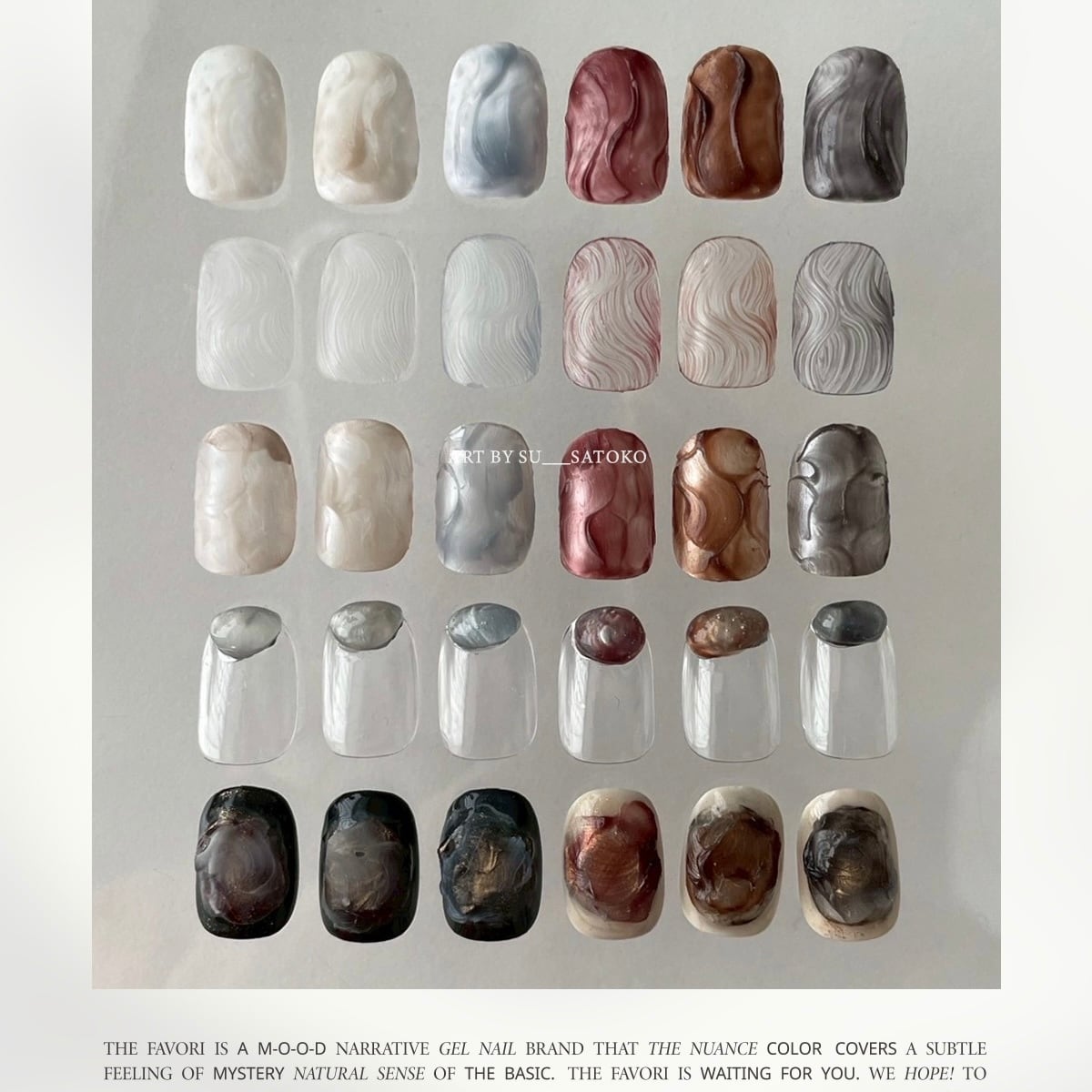 やわらかな発色と絶妙な色味で、奥行きのある表現も簡単に。鉱物風や、油絵風のアートなど、幅広いアートにも活躍するクセになるテクスチャーとカラーラインナップです。