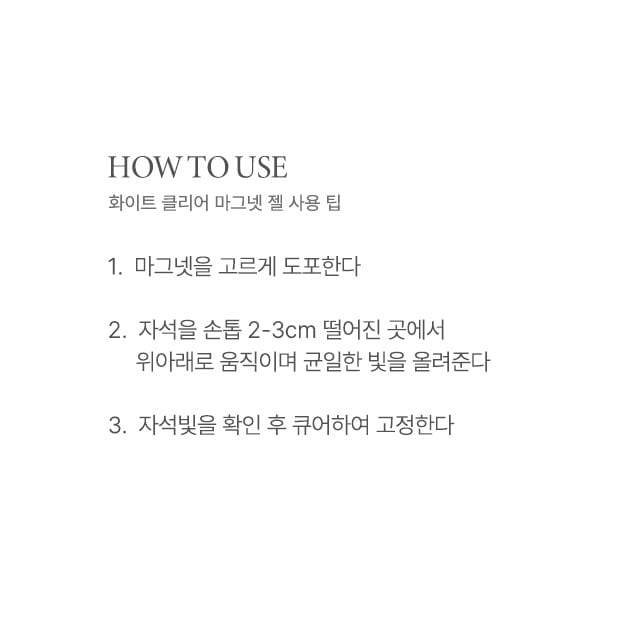 2. 磁石を爪から2〜3cmほど離し、上下左右に動かしながらお好みの光の集まりを作ります。